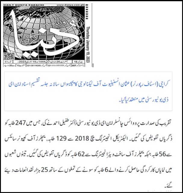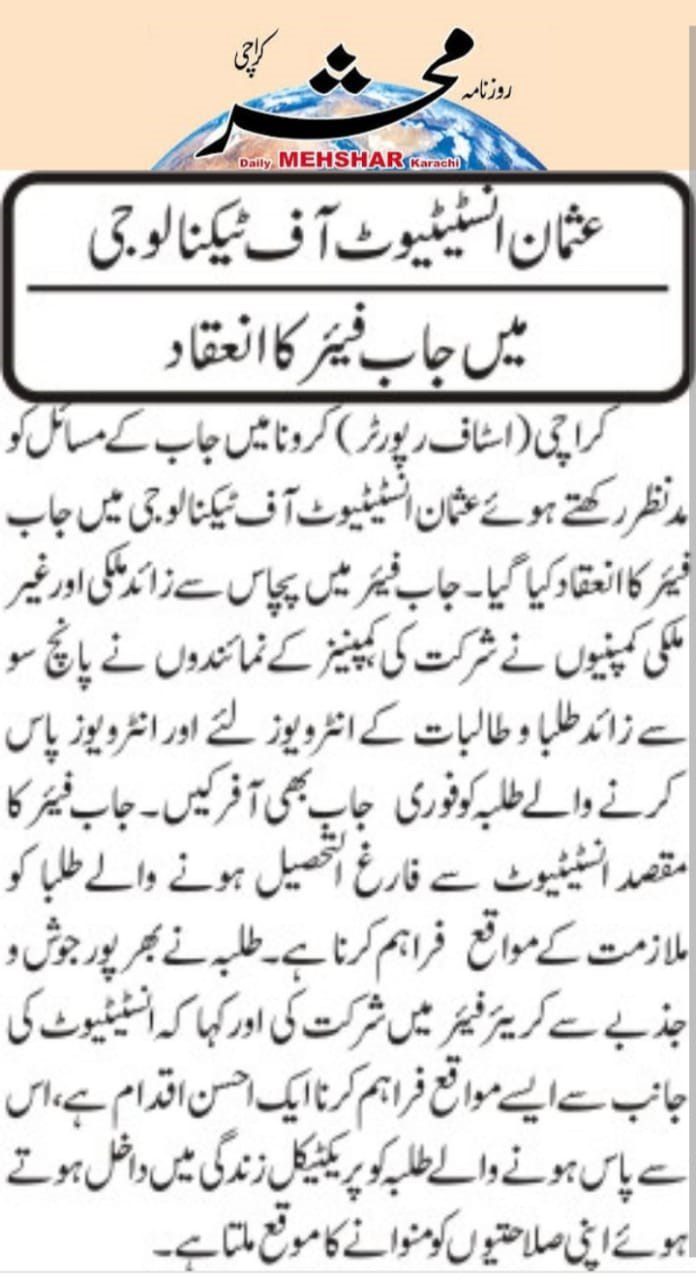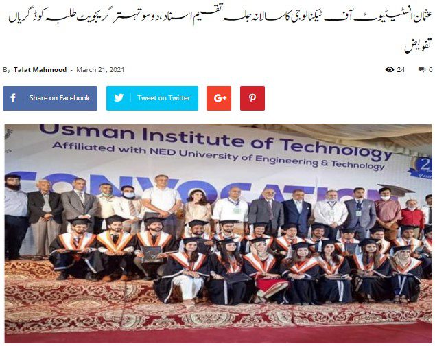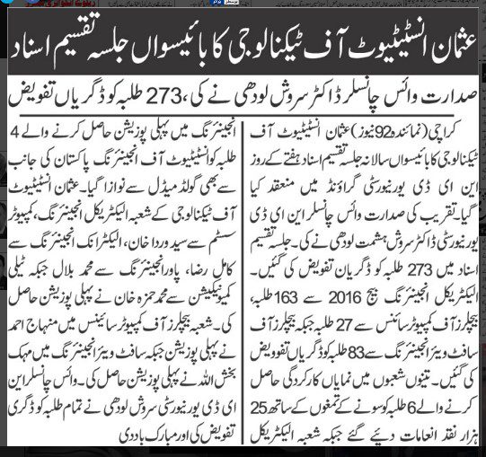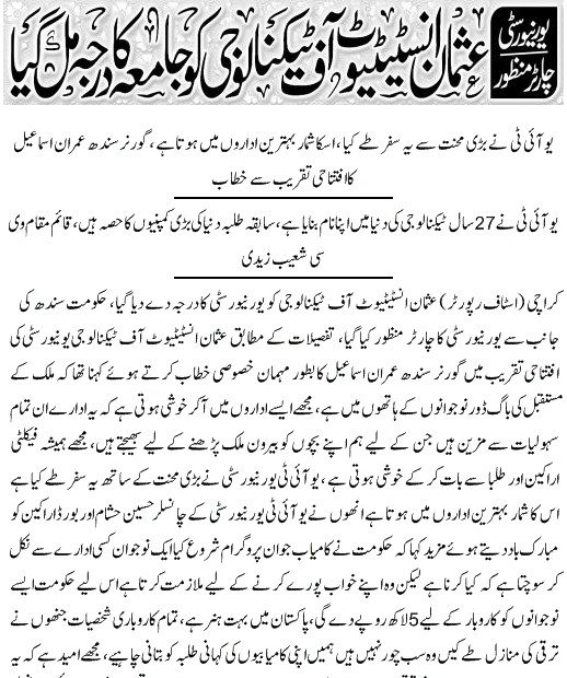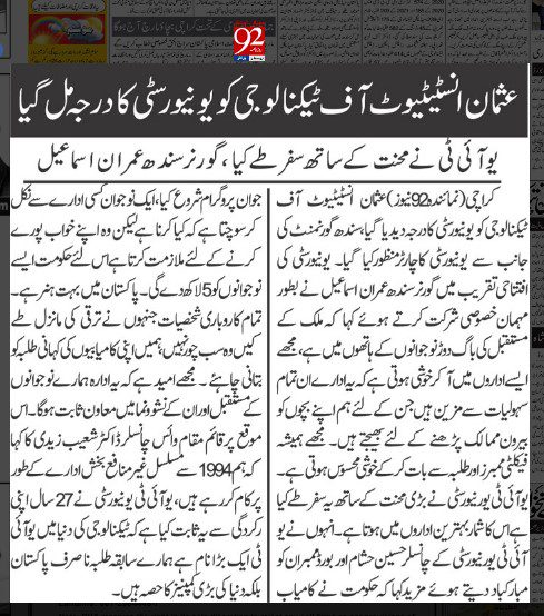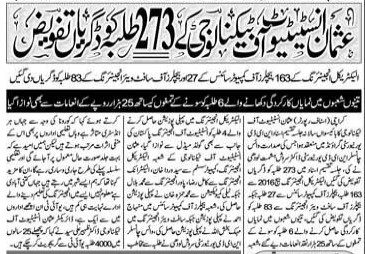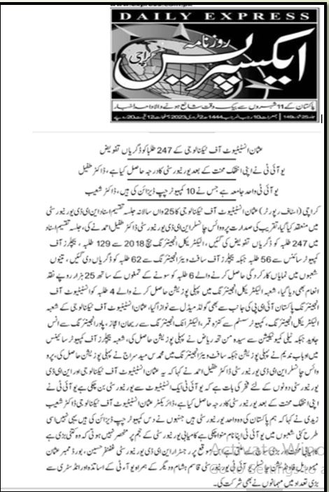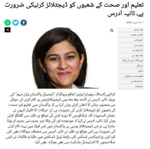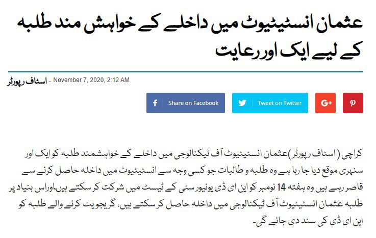 TANIA AIDRUS VISITED USMAN INSTITUTE OF TECHNOLOGY(Dated: 16-Dec-2019)