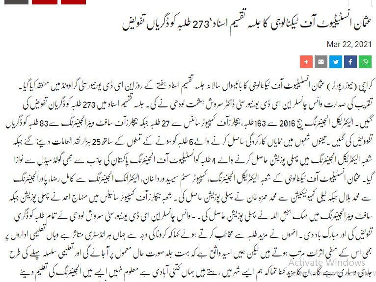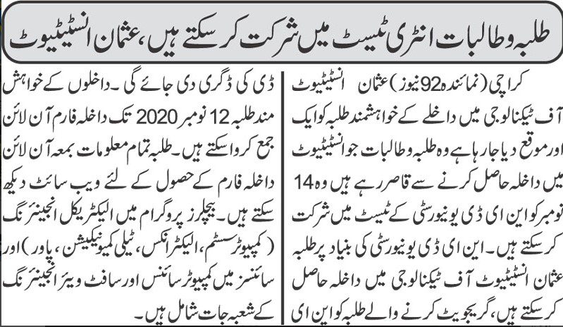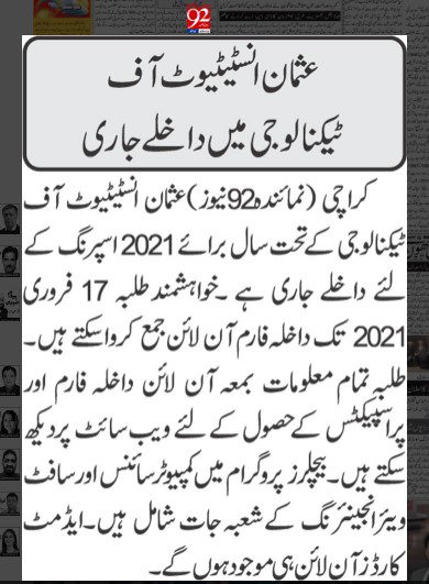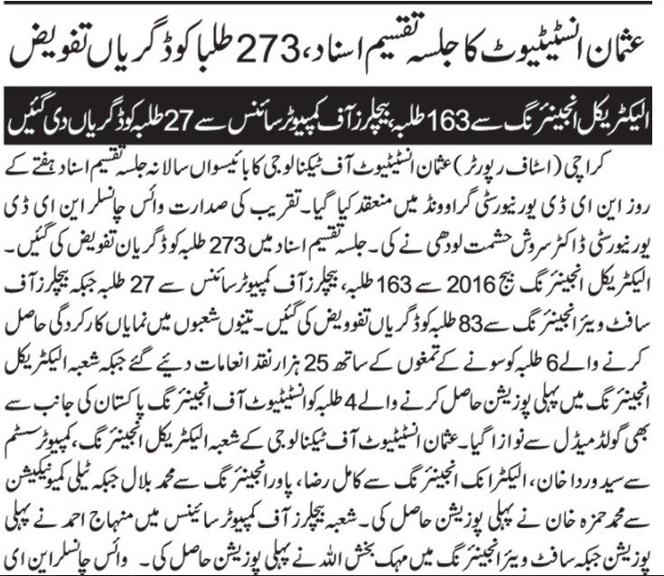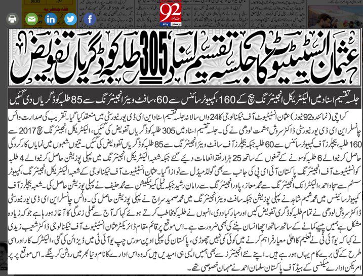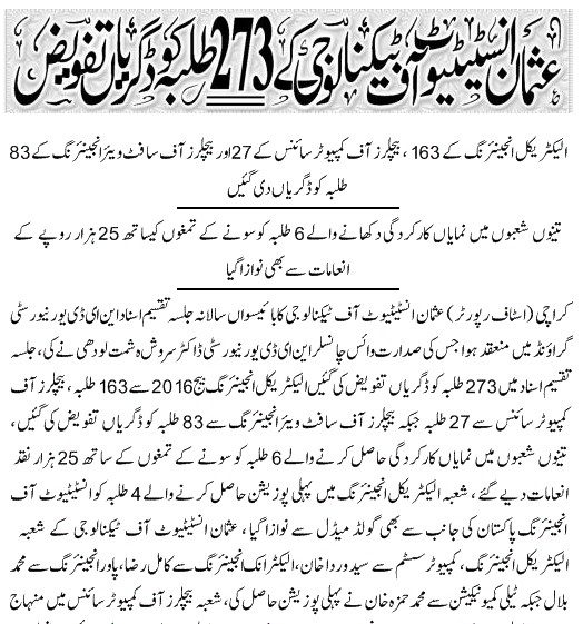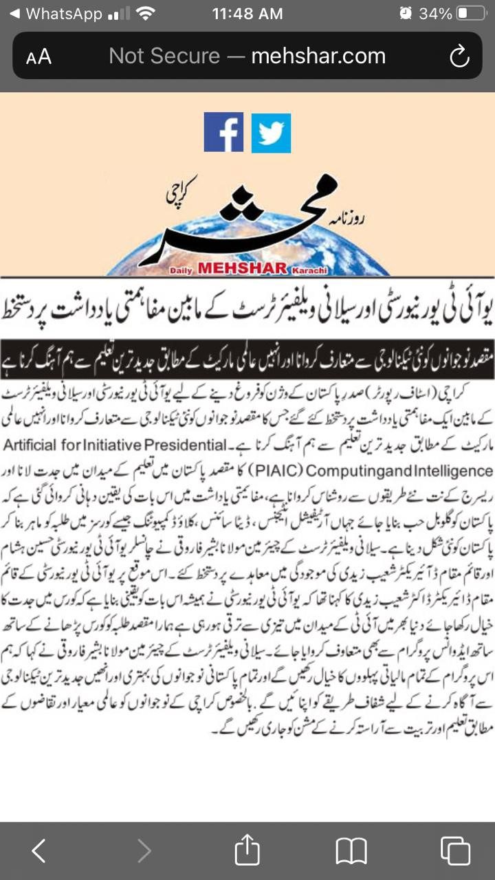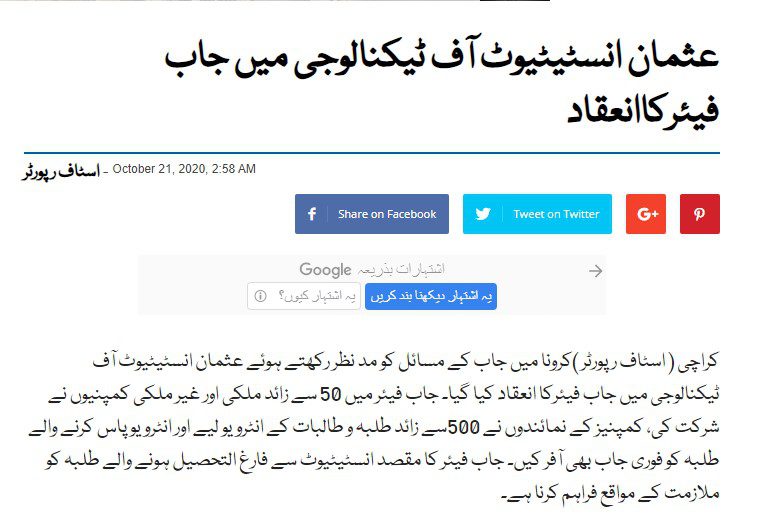 TANIA AIDRUS VISITED USMAN INSTITUTE OF TECHNOLOGY(Dated: 16-Dec-2019)