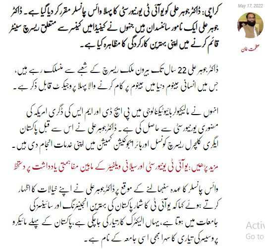 UIT University First Vice Chancellor(Dated: 18-May-2022)
