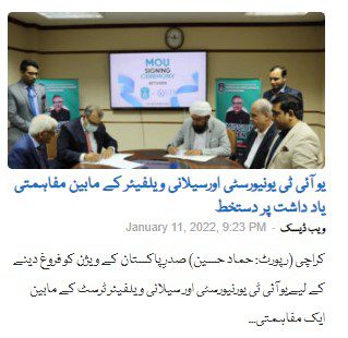 MoU signed between UIT University and Sailani Welfare(Dated: 13-Jan-2022)